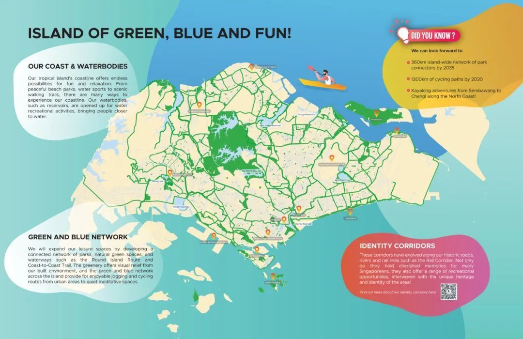 围绕以上的四个主题,新加坡市区重建局目前已经举办了多个展览与竞赛,例如休闲总体规划展览、武吉知马赛马城展览、长岛计划展览、身份认同走廊展览、塑造耐热城市展览、铁路走廊创意竞赛等。其中,休闲总体规划是公众最息息相关的版块之一,旨在为新加坡打造丰富的休闲空间,为所有人提供有趣、包容和有吸引力的休闲活动。