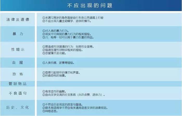 《草案》中对负面清单划分了法律道德、暴力、性暗示、血腥、恐怖、管制物品、不良语句、历史文化八个维度,且不同年龄层的相同维度定义也不一样。以“血腥”一项为例,6+级别定义为“人类伤痕、淤青等描绘”,12+级别就定义为“贴近现实的伤口”“造成包括10级伤残及以上的情节”等。