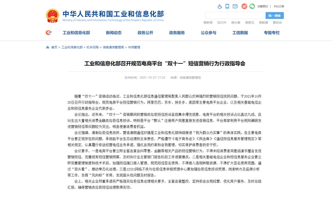 发送短信的商家中,有我们曾经购买过的,也有一些从未见过的“新面孔”。针对反映强烈的营销短信扰民问题,10月25日,工业和信息化部召开行政指导会,要求不得未经消费者同意或请求擅自发送营销短信。