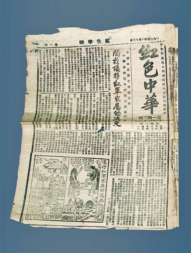 1934年1月13日,《红色中华》第1版关于优待红军家属的宣传报道。南昌八一起义纪念馆供图
