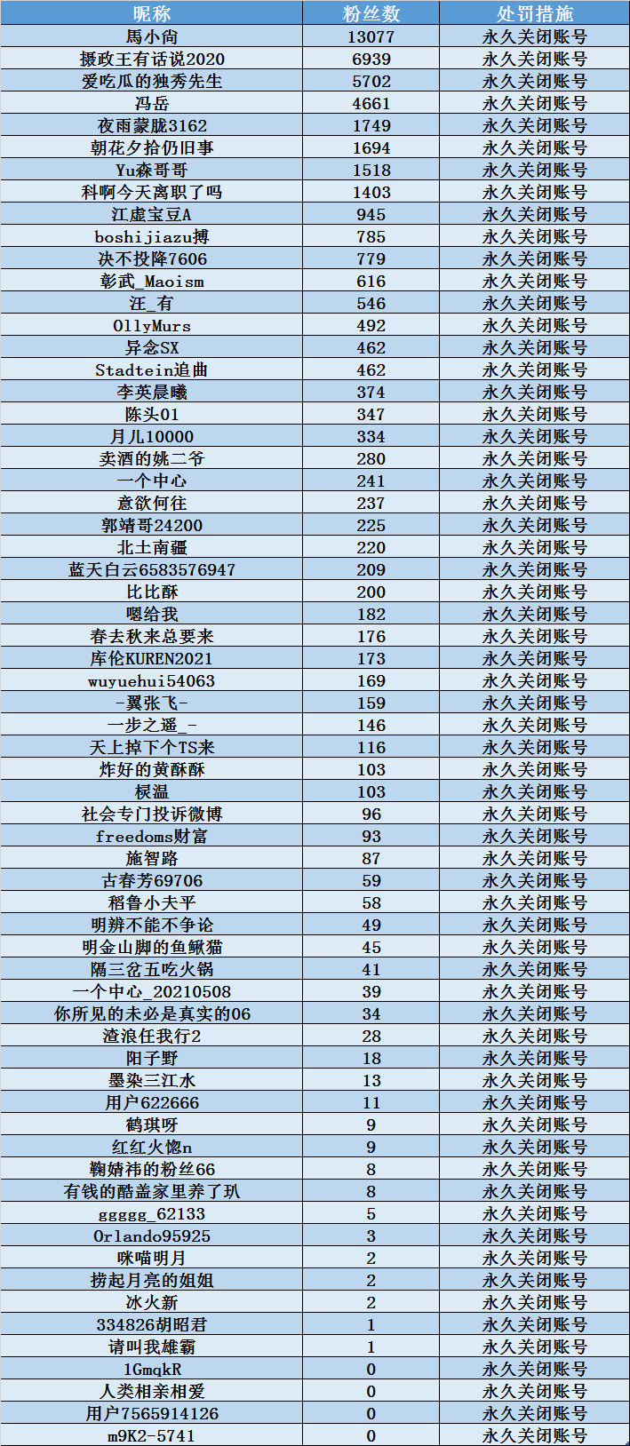 微博严肃处置 永久关闭账号
