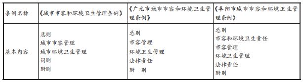 但是,通过对设区的市地方立法文本的考察与梳理,不难发现,地方立法大量照抄照搬上位法及兄弟省市法规,对不同设区的市制定的城市市容和环境管理方面的地方性法规进行随机抽样,将其结构与内容其在纵向上与上位法比较,在横向上相互比较(如表1),或能更具象地展现目前我国地方立法的尴尬境地。