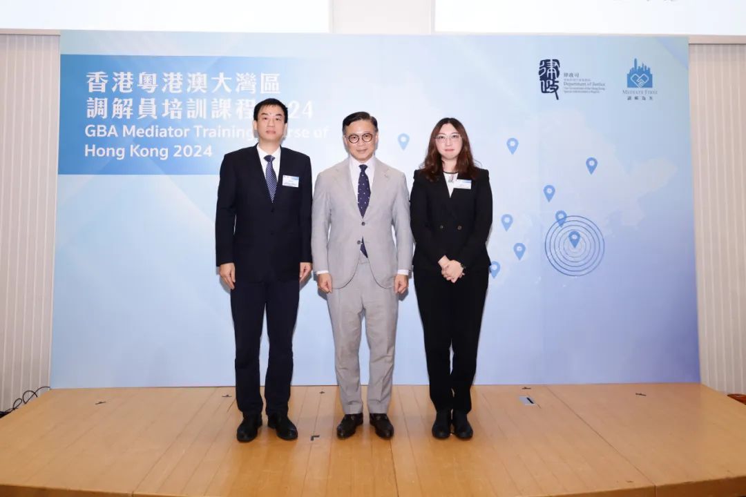 2024年8月16日,为推进粤港澳大湾区非诉讼争议解决服务衔接,香港律政司举办首次香港粤港澳大湾区调解员培训课程,吸引约400人参加。广东省司法厅副厅长林楚明、澳门法务局局长梁颖妍先后在线上作开幕致辞,香港律政司副司长张国钧在香港培训现场为课程开班发表了热情洋溢的讲话。