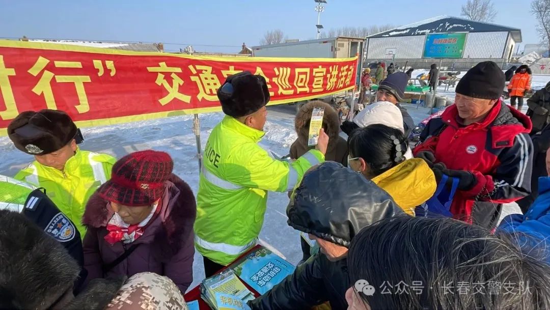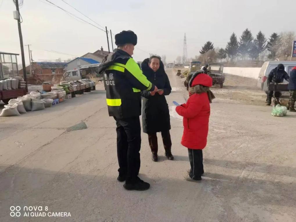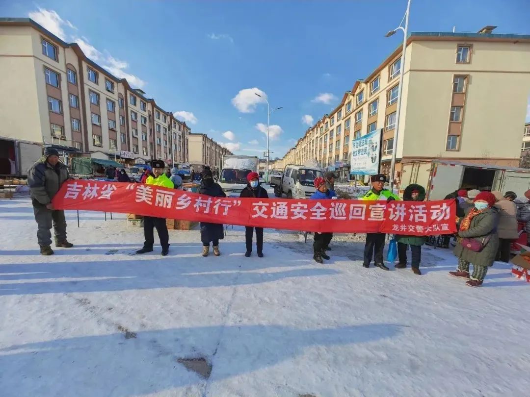 在延边,龙井市公安局交警大队组织民警深入开山屯镇,开展涉农交通安全警示宣传活动,让群众把“平安”带回家。