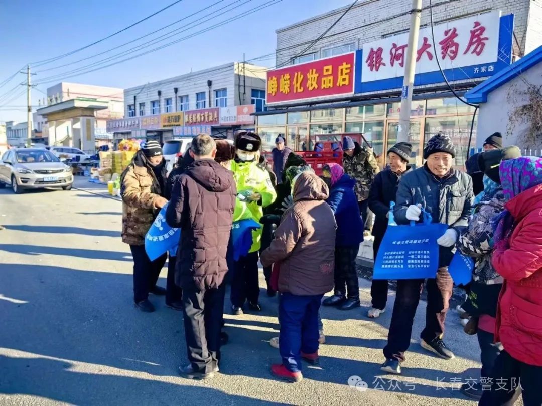 为有效预防和减少农村道路交通事故发生,日前,松原市公安局交警支队组织民警持续走进农村,对赶集群众开展春季涉农交通安全警示教育活动。