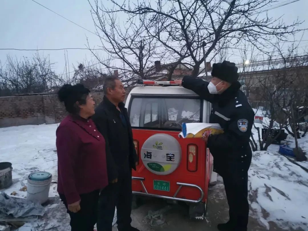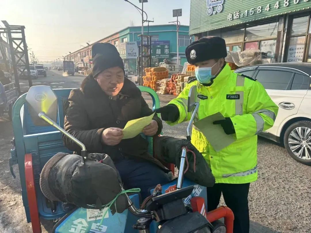 根据辖区冬季农村地区出行规律和特点,民警结合典型事故案例,通过“拉家常”的方式,用通俗易懂的语言向农村群众普及道路交通安全法律法规,向大家讲解农用车辆违法载人、驾乘摩托车不戴安全头盔以及酒驾醉驾等交通违法行为的严重危害,提醒大家要时刻将交通安全牢记于心,杜绝不文明交通行为,形成人人抵制交通违法行为、共建美丽乡村的良好氛围。