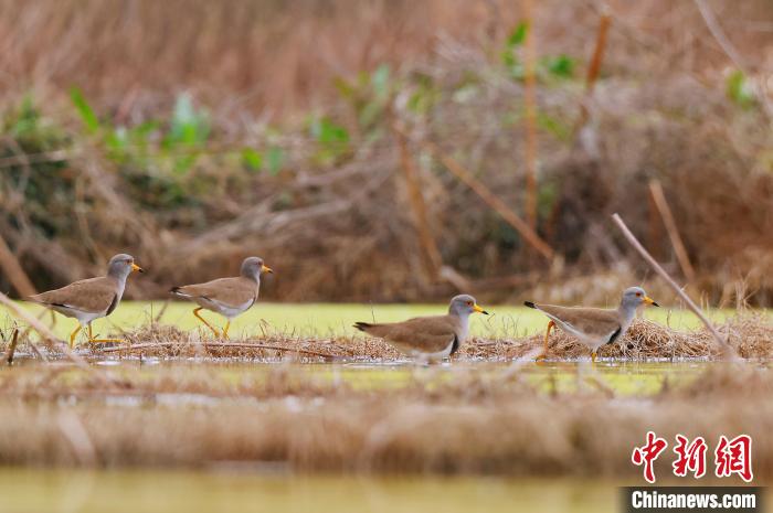 近日,十余只灰头麦鸡现身安徽省黄山市祁门县祁山镇芳村。此次灰头麦鸡成群在芳村荷塘出现尚属首次。