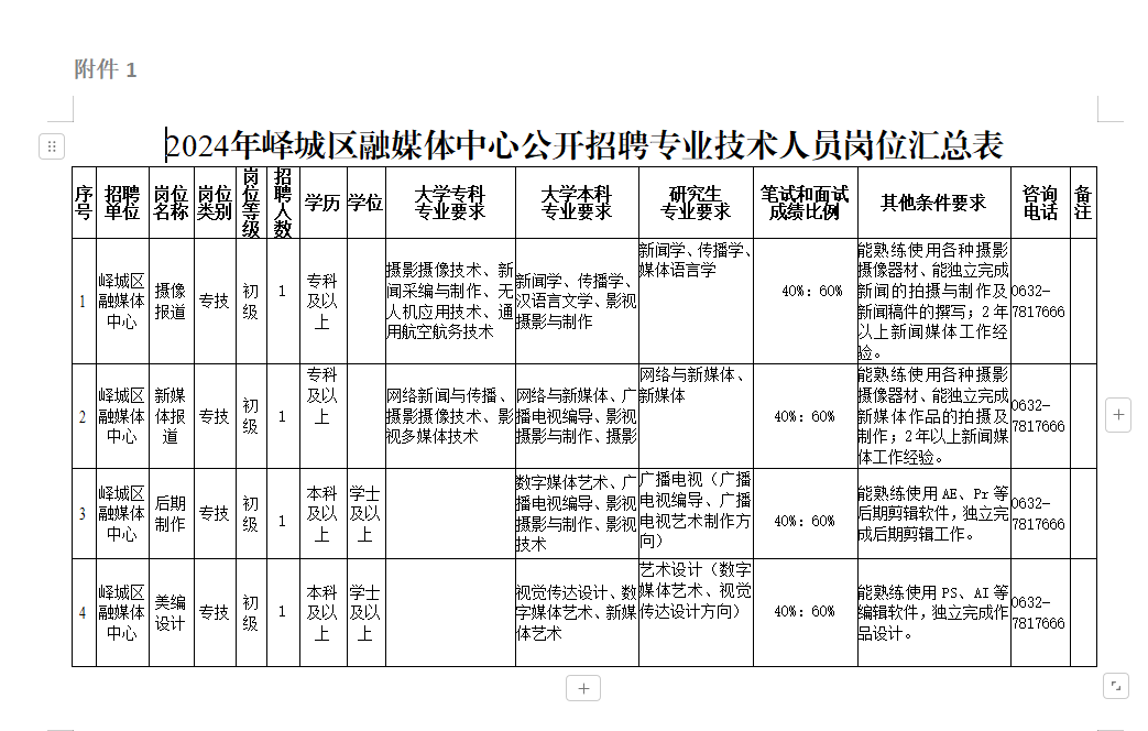1.2024年峄城区融媒体中心公开招聘专业技术人员岗位汇总表.docx