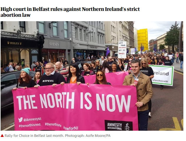 2019年10月3日,北爱尔兰高等法院最终裁定禁止堕胎法律与欧洲人权公约第八条不相容。
