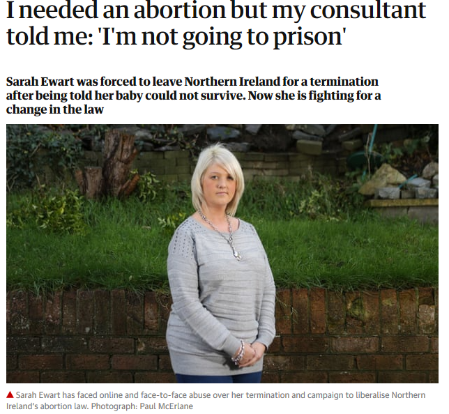 在相当长的一段时间内,北爱尔兰都是世界上堕胎法律最严格的国家之一。除非准妈妈生命陷入危险,否则即便是致命的胎儿畸形、强奸导致的怀孕等情况,都不能构成堕胎的合法理由。
