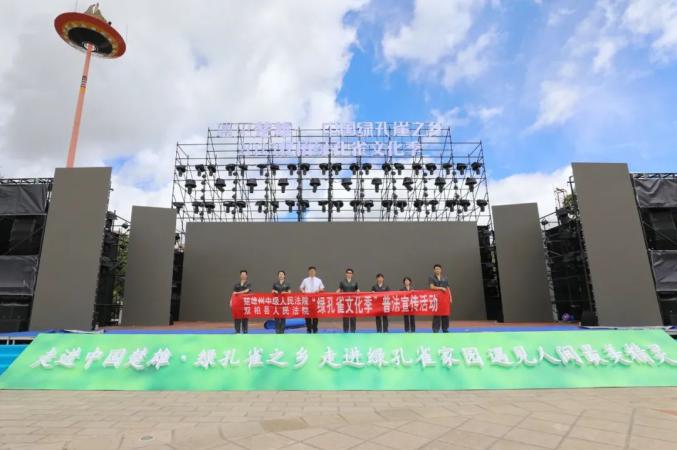 2023年9月19日-20日,中国·双柏绿孔雀文化季活动在双柏县城举行。为进一步增强人民群众保护绿孔雀共识,合力守护中国绿孔雀之乡。9月19日,楚雄州中级人民法院联合双柏县人民法院到双柏县城开展绿孔雀文化季普法宣传活动。