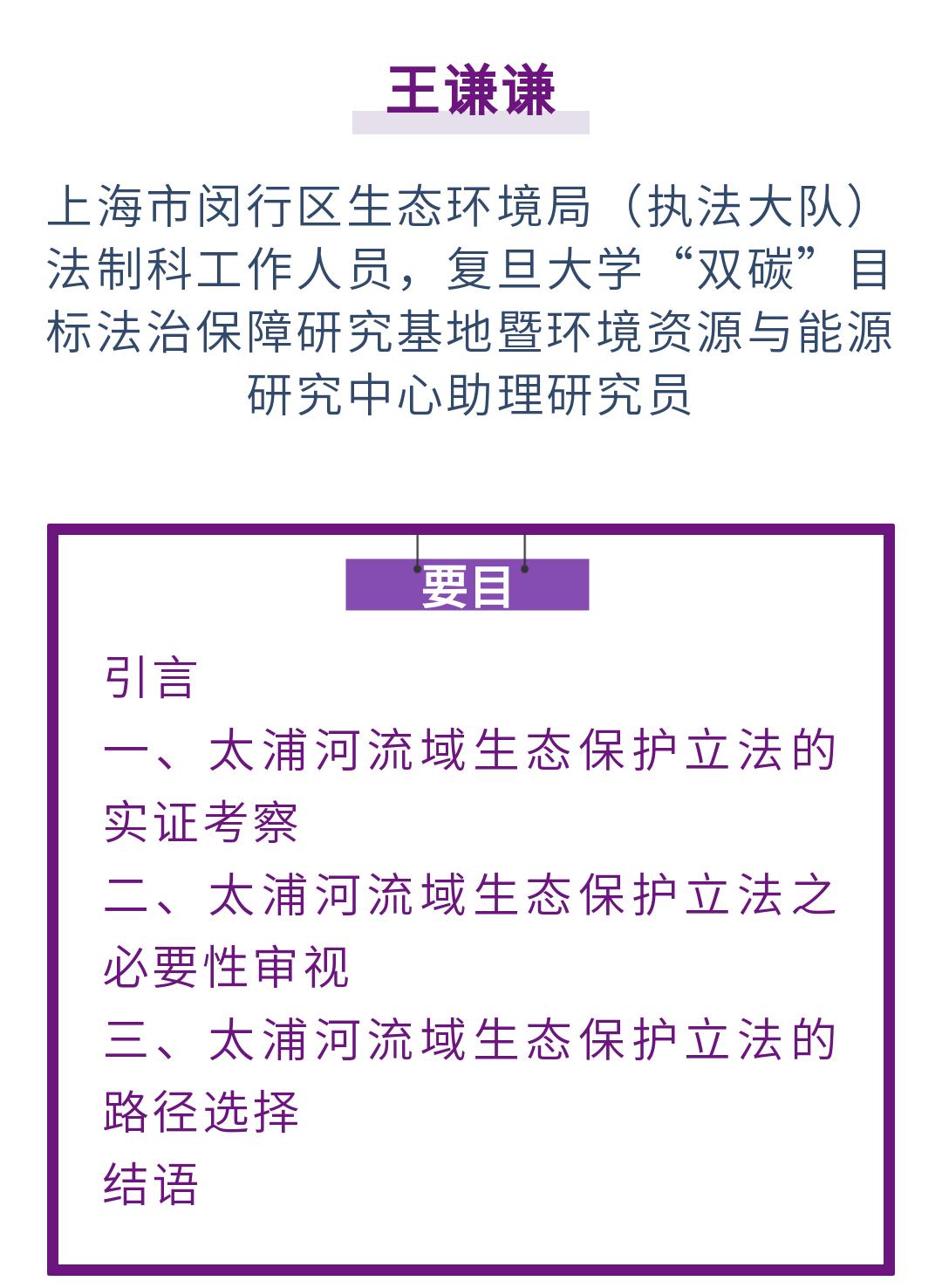 原标题:《王谦谦|“长三角一体化”背景下生态保护立法路径选择——以太浦河流域生态保护立法为例》