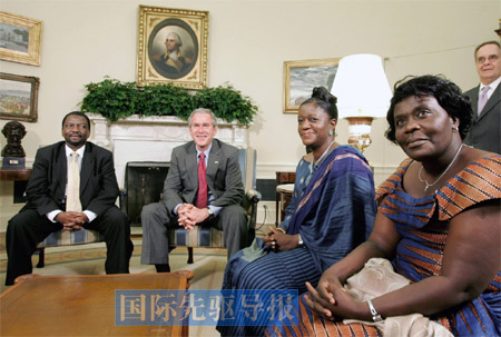 2006年,时任美国总统小布什(左二)与美国国家民主基金会奖项获得者在一起。路透社