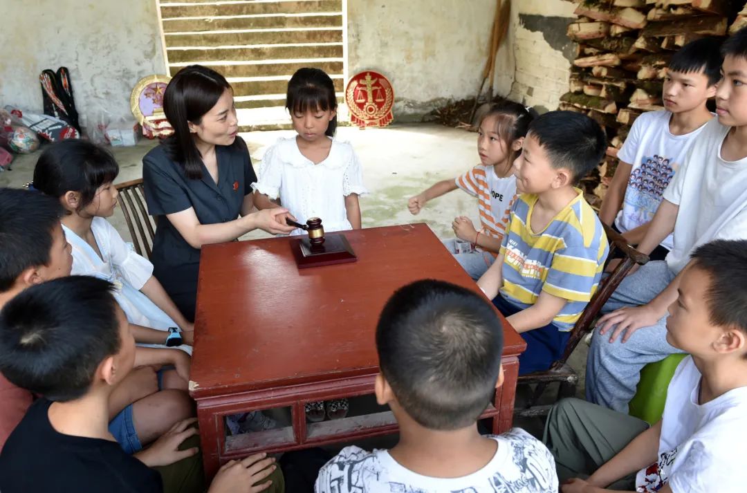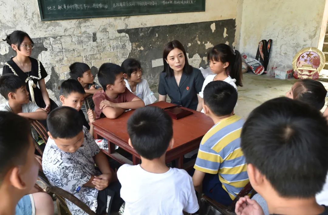 ▲赤日炎炎的盛夏时节,普法志愿者挺进七曜山腹地,为乡村留守儿童带来生动活泼的法治讲座。