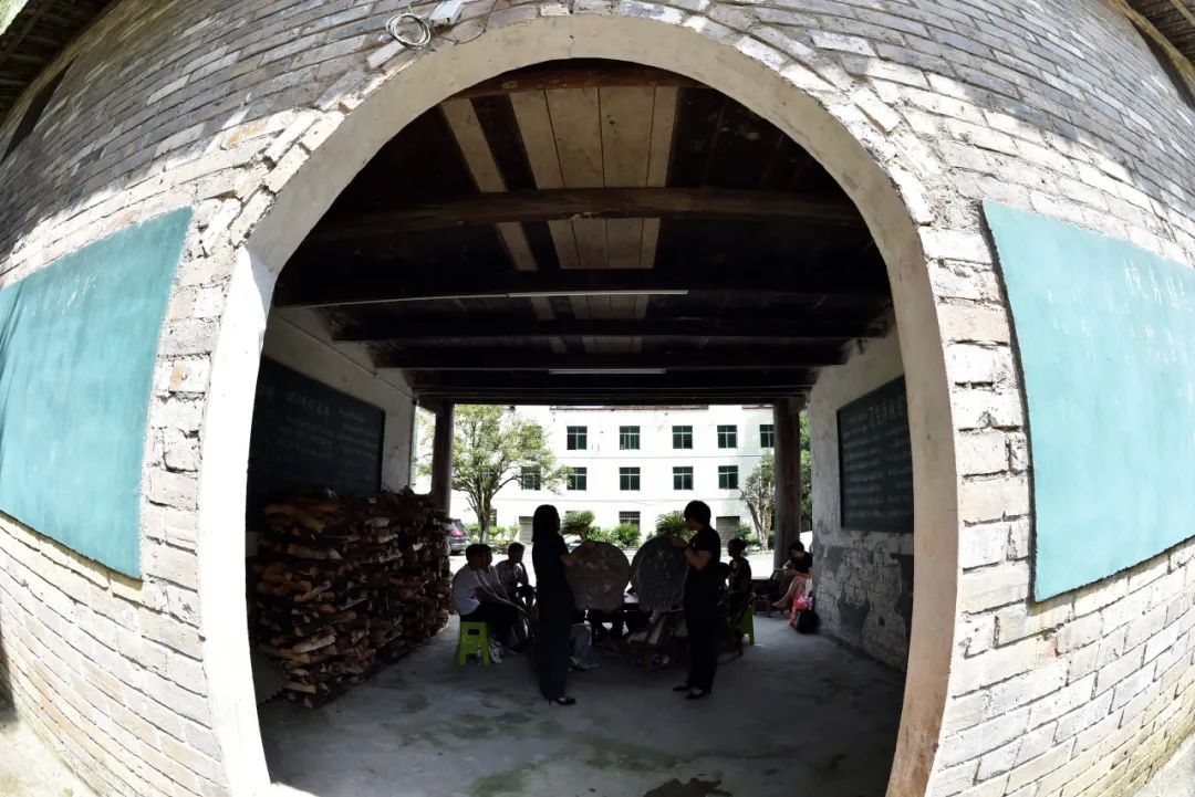 ▲文物古迹“耀灵书院”的厅堂内,孩子们围着法官阿姨倾听“小公民法律讲堂”。