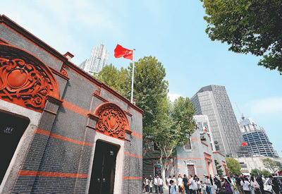 人们在上海中共一大会址参观。