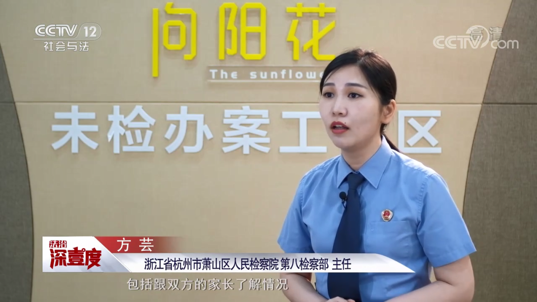 浙江省杭州市萧山区检察院第八检察部主任方芸:对于打人的小孩,我们对家长和小孩都进行了同步的心理干预和法治教育。只说说可能他们没有那么深切的感受,我们把别的案例给他们看,比如校园欺凌的视频等等,我们也把其它的资料给他们看。然后他们认识到了这个(情况)很严重,最后他们自己主动要求说要赔礼道歉。