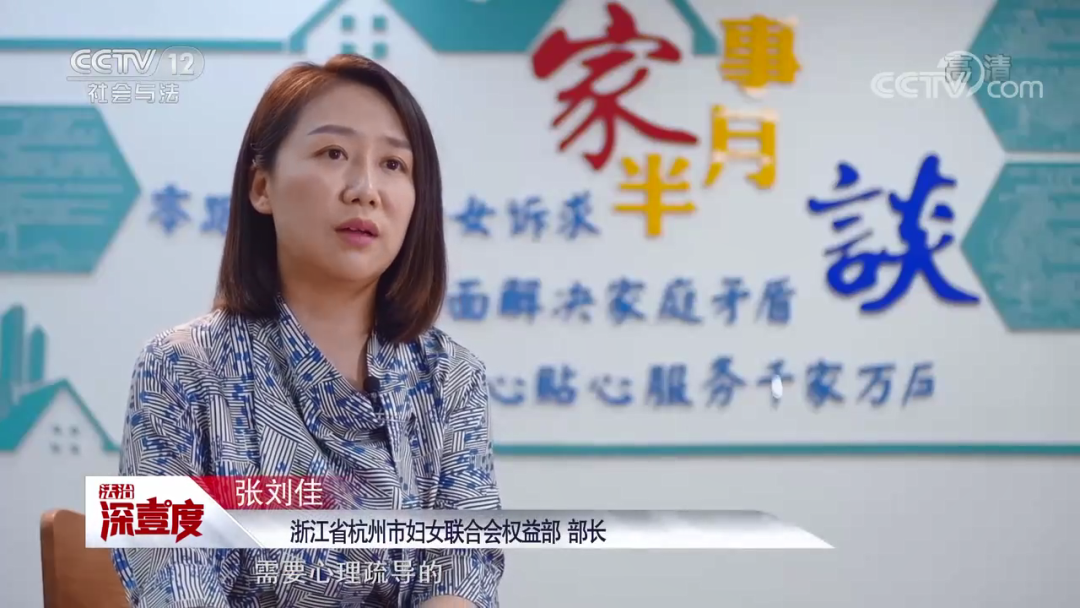 浙江省杭州市妇女联合会权益部部长张刘佳:需要心理疏导的,我们都有这样的服务机制提供给他。如果这户家庭生活上有实际困难的,我们也会实际开展帮助。