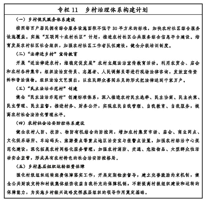 深化电信普遍服务,加快农村地区宽带网络和第四代移动通信网络覆盖步伐。实施新一代信息基础设施建设工程。实施数字乡村战略,加快物联网、地理信息、智能设备等现代信息技术与农村生产生活的全面深度融合,深化农业农村大数据创新应用,推广远程教育、远程医疗、金融服务进村等信息服务,建立空间化、智能化的新型农村统计信息系统。在乡村信息化基础设施建设过程中,同步规划、同步建设、同步实施网络安全工作。