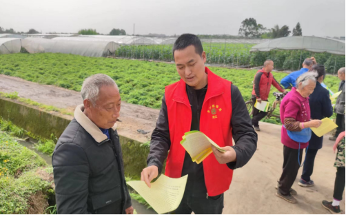 当前正值黄瓜、茄子、番茄等蔬菜病虫防治关键时期,乡村植保员认真履行病虫情报侦察兵、植物保护法律法规宣传员、病虫防治技术指导员、农药使用调查员“一兵三员”的工作职责。2023年4月6日乡村植保员在甘江镇五星村开展科学安全用药及病虫防治指导,共发放《如何科学安全使用农药》、《农作物病虫害防治条例》等宣传单200余份,培训蔬菜种植户30人次。通过培训,切实提升了蔬菜种植户病虫害识别、防控、科学安全使用农药的意识和能力。
