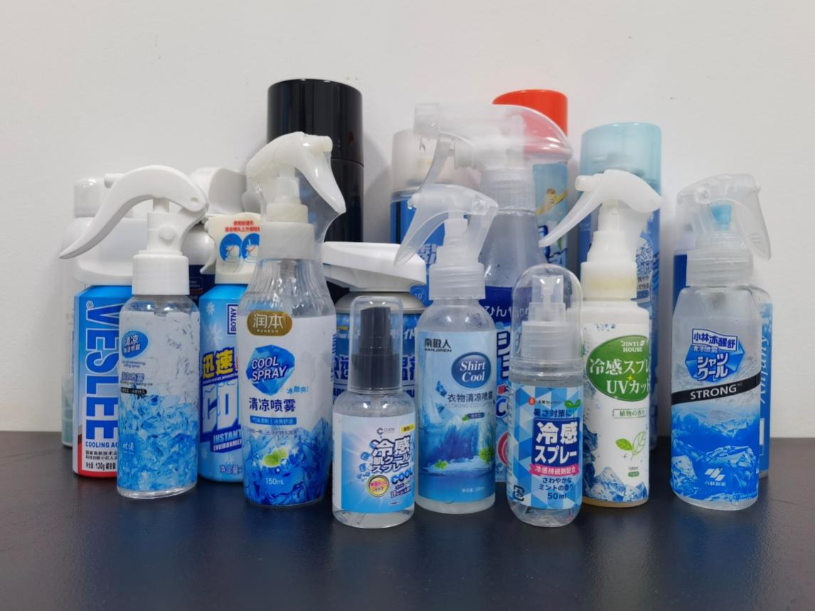 一般宣称用于车内降温、衣物降温或人体降温。我们买了20款热销的降温喷雾,从降温效果、易燃性、标识规范性等方面进行评测。