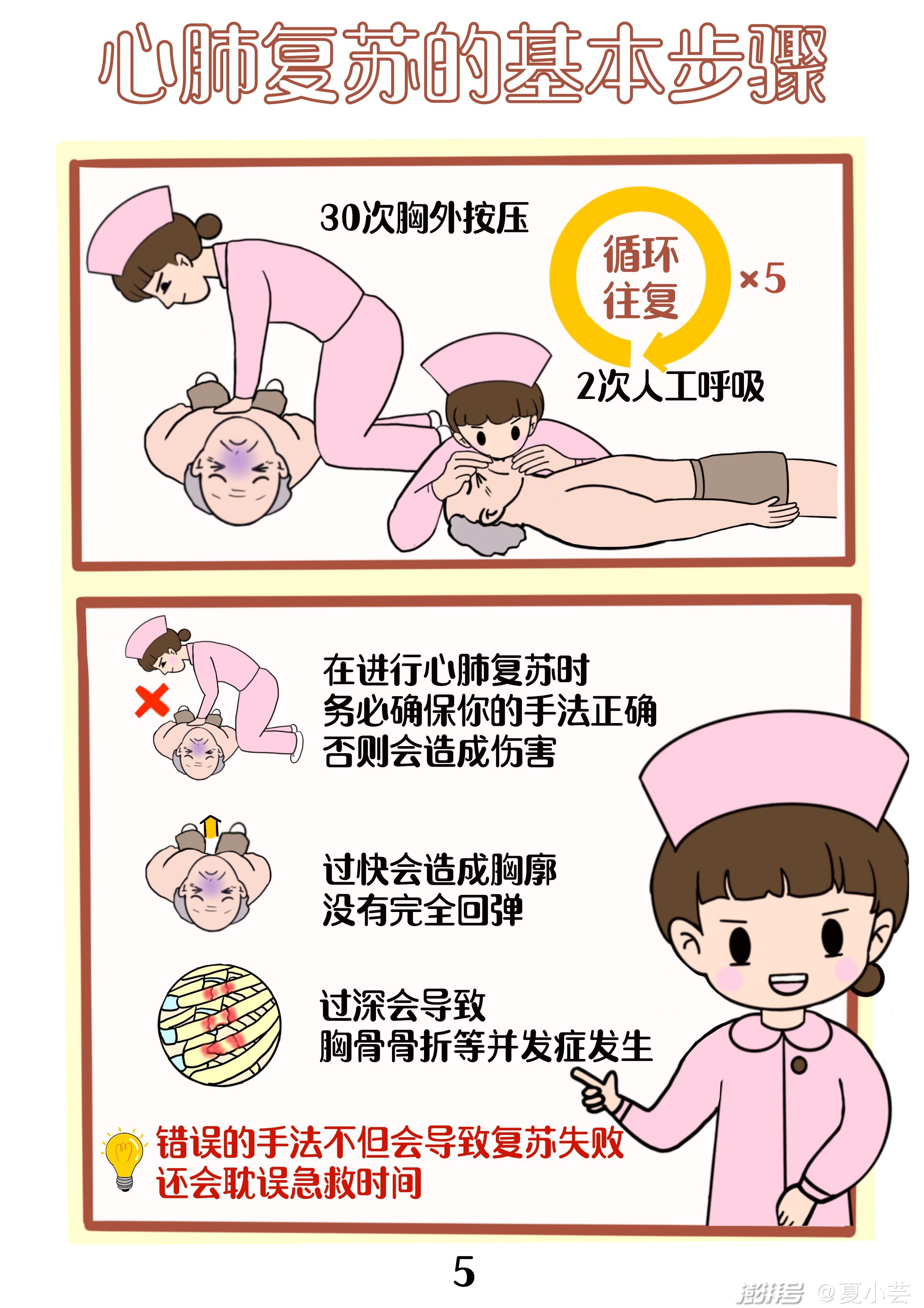 需要注意的是心肺复苏中尽量减少中断按压时间,保证每次按压后胸廓完全回弹至原状,避免通气过多、过快。