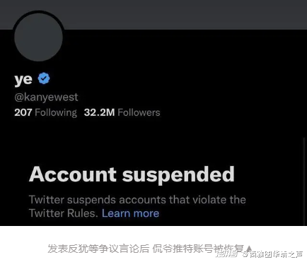 15、发表反犹等争议言论后 侃爷推特账号被恢复