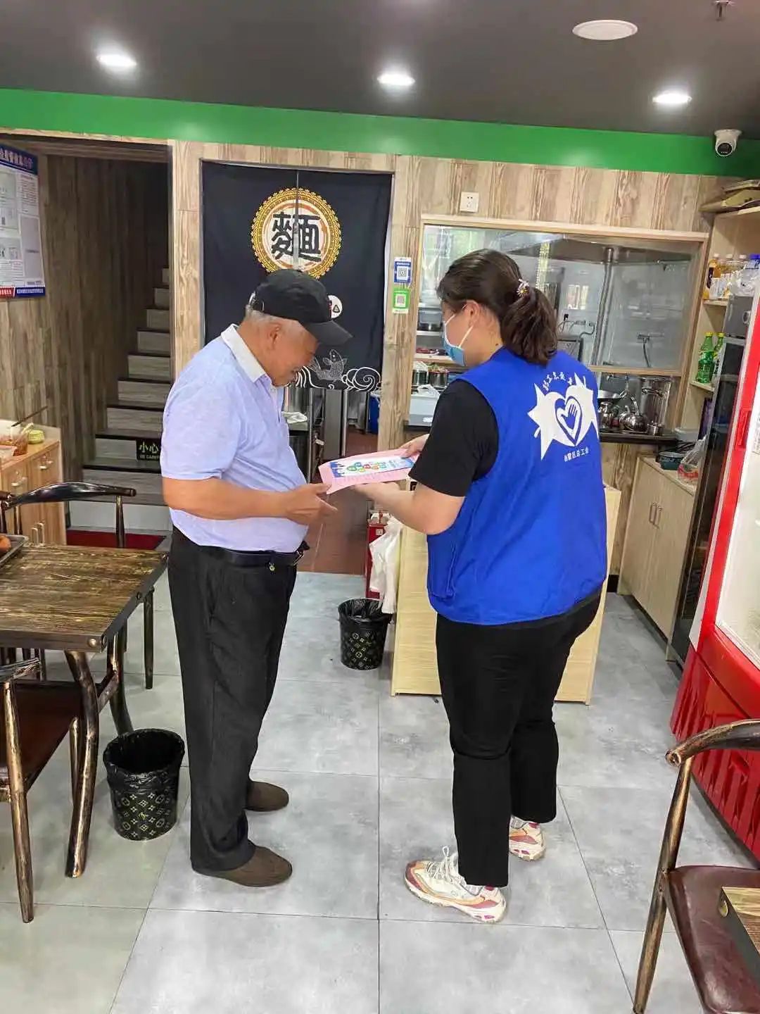尧化街道尧安新村联合工会志愿者向社区居民、职工、经营户发放法律法规宣传页,让大家了解守法经营、依法保障职工合法权益的重要性,努力在辖区内形成正向引导,营造浓厚法治氛围。
