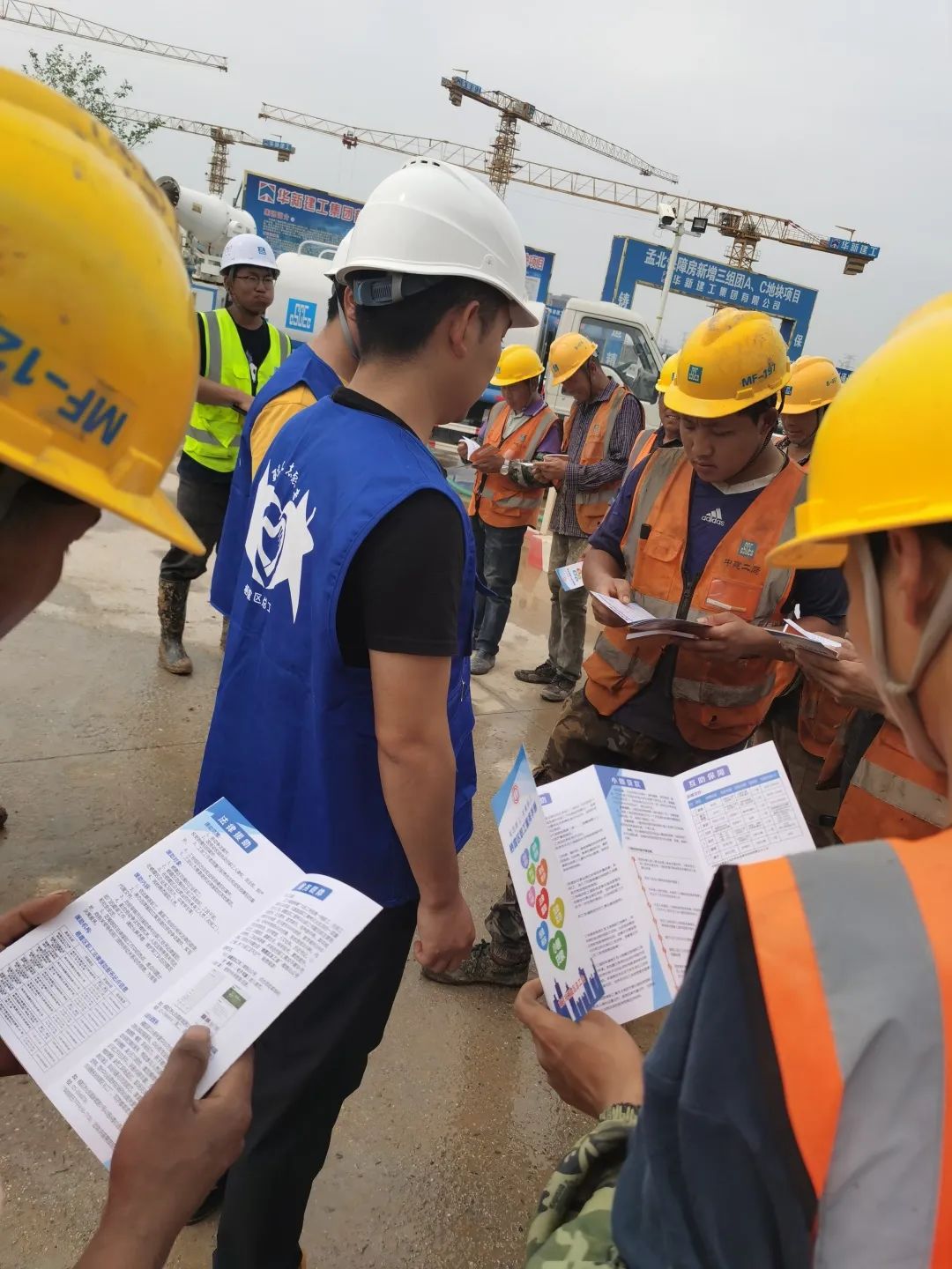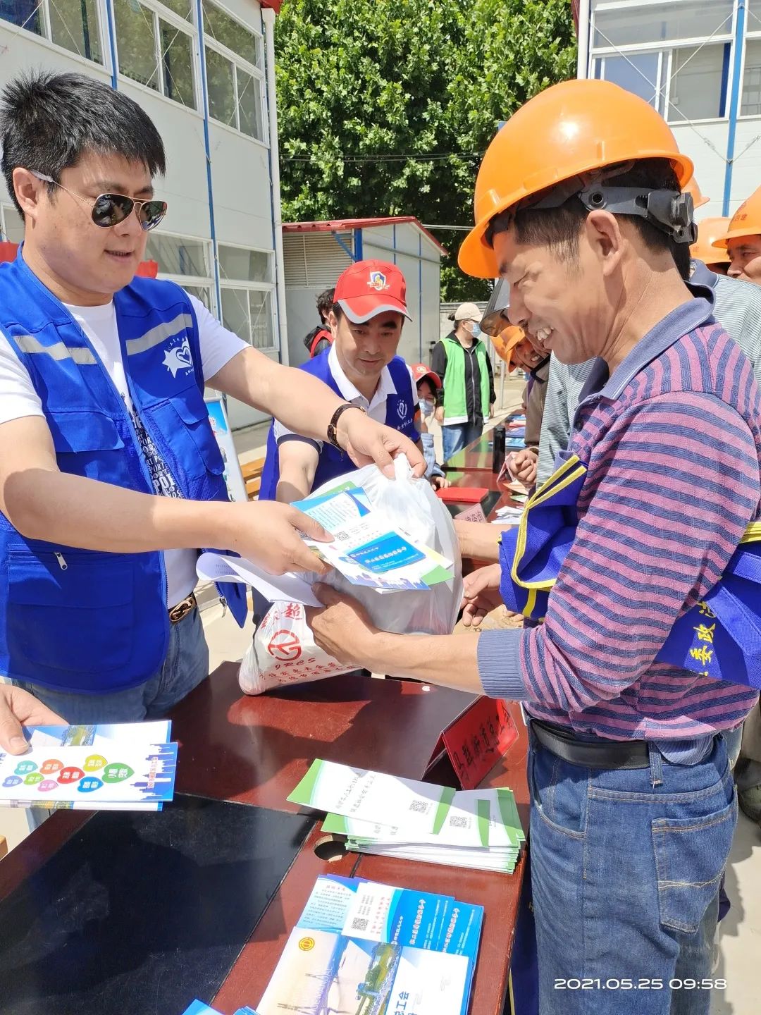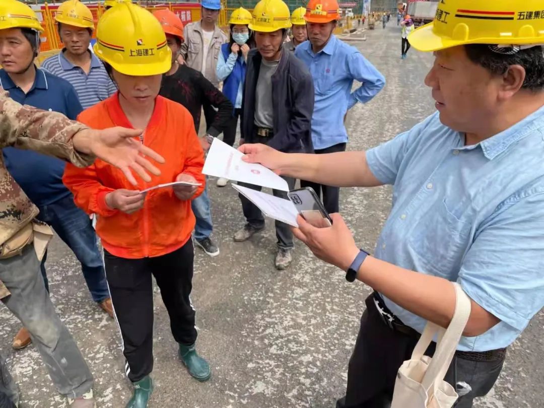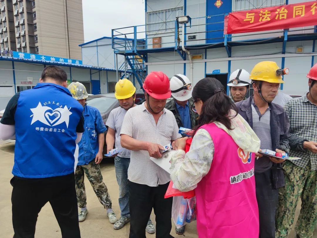 5月27日上午,栖霞街道总工会联合司法所、劳动保障所以及村(社区)联合工会举行“与法治同行·为劳动护航”五一劳动法治宣传服务活动。栖霞街道总工会副主席蔡家宝来到上海建工五建集团施工现场,对坚守在建设一线的工人们表示衷心感谢和慰问,并现场发放了《保障农民工工资支付条例》《工伤保险条例》等宣传手册200余份。