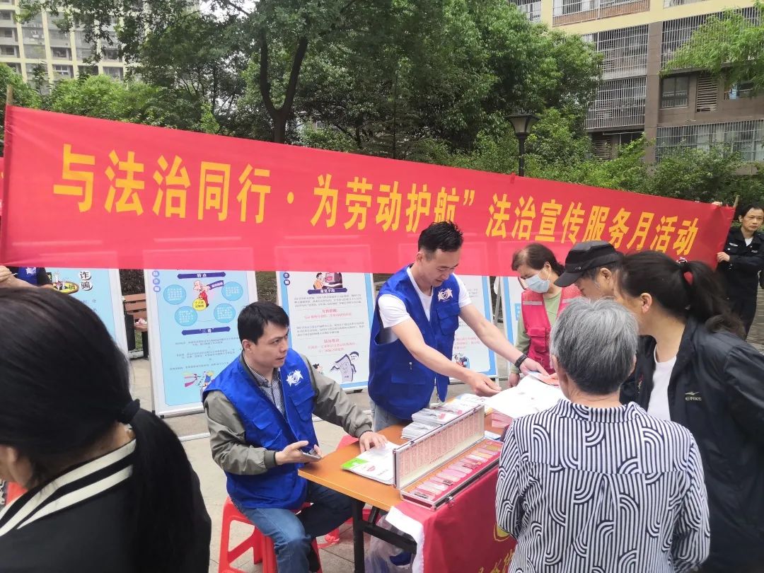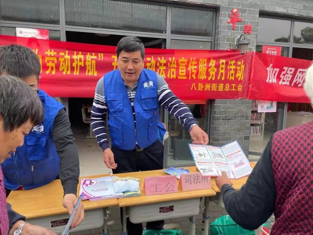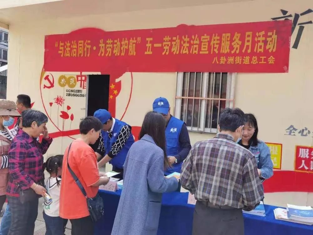 八卦洲街道总工会联合司法、综治、妇联、村居等部门先后在东江村和八卦花园社区开展“与法治同行·为劳动护航”五一劳动法治宣传服务活动。