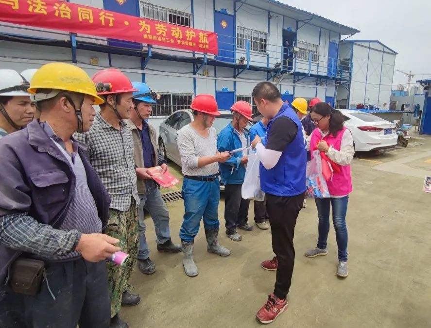 栖霞街道红梅社区联合工会也积极行动起来,走访慰问了红枫片区保障房一期工程南通长城建筑工地的工人,为他们送去了丰盛的法治宣传“大餐”。