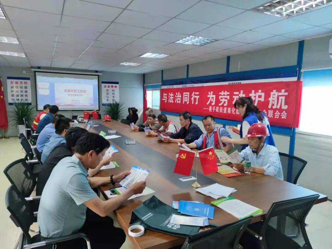 燕子矶街道南化新村社区工会联合会,联合辖区龙信建设开展“与法治同行·为劳动护航”五一劳动法治宣传服务活动。
