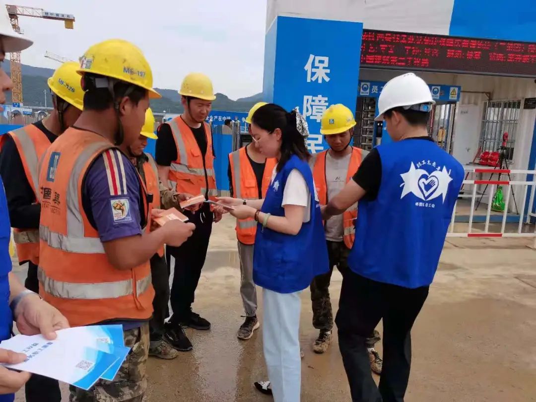 职工志愿者向民工们发放了《劳动合同法》《保障农民工工资支付条例》《工伤保险法律知识》等普法宣传手册,还特别邀请了法律顾问朱律师现场开展法律咨询,答疑解惑。
