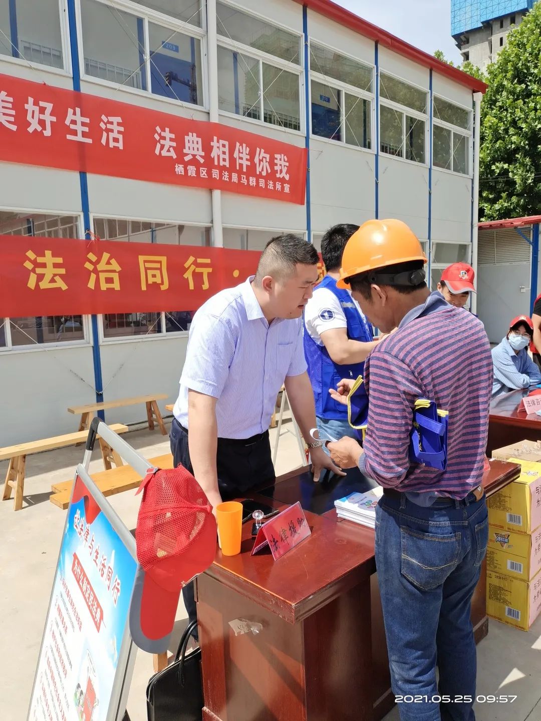 5月25日上午,马群街道总工会联合街道司法所、综治中心、劳动所走进百水保障房二期工地开展了“与法治同行·为劳动护航”五一劳动法治宣传服务活动,为农民工提供调解、仲裁和诉讼等法律援助服务,工地近百名农民工参加了此次活动。