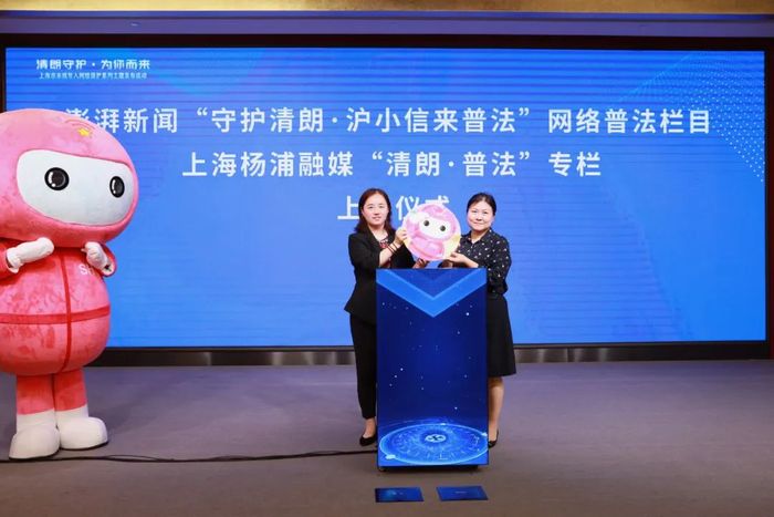上海市网信办联合澎湃新闻打造的“守护清朗·沪小信来普法”网络普法栏目、“上海杨浦”融媒“清朗·普法专栏”也在活动现场正式上线,旨在通过上海网络清朗小卫士“沪小信”原创漫画形象普及互联网相关法律法规,提升全社会网络法治意识和素养。
