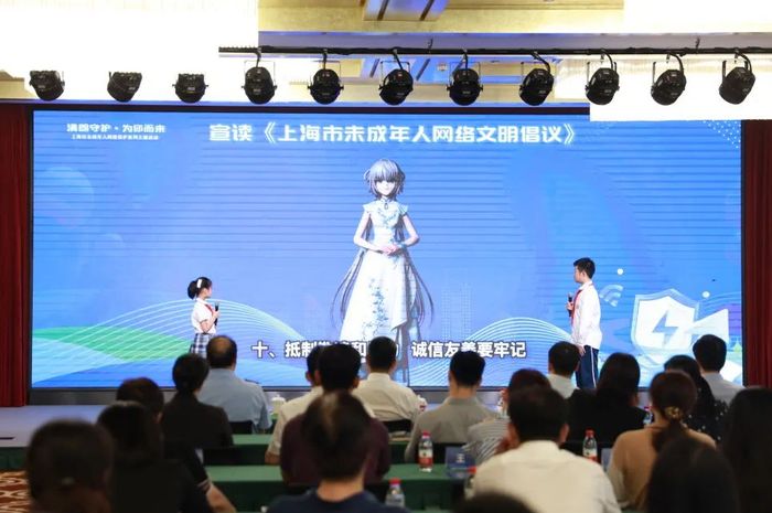 “网上发言要理性,崇德向善讲文明;网上娱乐要适度,网络游戏不沉迷……”活动现场,哔哩哔哩虚拟主播“洛天依”与杨浦区文明上网小使者代表一同宣读了《上海未成年人网络文明倡议》。上海市网信办、市文旅局执法总队分别发布《上海网络平台青少年模式设置指南(3.0版)》《侵害未成年人身心健康的网络信息执法指南》重点内容。