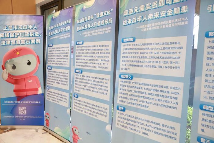 当日,市网信办、市检察院、市文旅局执法总队联合发布“上海市未成年人网络保护行政执法、法律监督警示案例”。12个案例涵盖了《未成年人保护法》“网络保护”专章中的重点条文和执法监督依据,旨在通过以案释法,警示互联网企业切实履行主体管理责任,提示公众关注未成年人网络保护,凝聚社会共识。后续将以进网络、进企业、进校园等形式进行线上线下巡展。