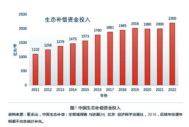 中国生态补偿资金投入。资料来源:中国生态补偿政策研究中心
