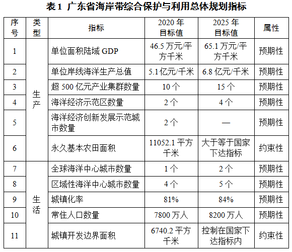 基于广东省海岸带自然资源禀赋和承载能力、产业基础和发展潜力,以海岸线为轴,构建“一线管控、两域对接,三生协调、生态优先,多规融合、湾区发展”的海岸带保护与利用总体格局,逐步实现陆海统筹。具体如下: