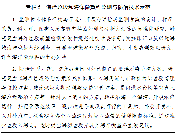 粤港澳大湾区主要保护中华白海豚、黄唇鱼、猕猴等国家野生珍稀生物物种及大鹏半岛等地区特殊地质地貌,保护川山群岛、万山群岛等典型海岛生态系统及珠江流域生态,维护镇海湾等红树林湿地,保障考洲洋等海湾水体环境的稳定,提升海洋环境监测评价能力。推进国家级海洋公园、生态岛礁和美丽海湾建设。加强珠江等河流的陆源污染排海控制,提升粤港澳大湾区重要岸段综合减灾能力,开展湾区海洋灾害风险评估和区划、隐患排查及治理,在产业园区及重大项目可行性论证阶段,开展海洋灾害风险评估,提高核电、石化工业园区及港口物流基地的海洋灾害防御和突发性海洋污染事故应急处置能力。开展海漂垃圾和海洋微塑料源头治理及监测,并建立清理防治协调机制。推动一批生态和防灾减灾工程建设,提升湾区生态功能。