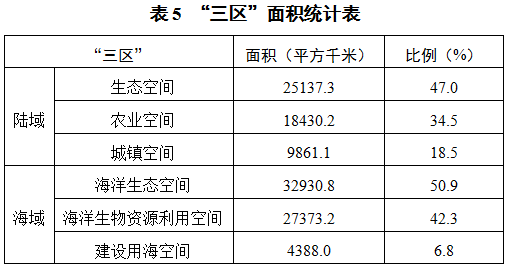 空间格局。湾区共划定严格保护岸线114.8千米,限制开发岸线129.8千米,优化利用岸线78.9千米。湾区陆域共划定生态空间面积819.5平方千米,占陆域面积22.0%;农业空间面积为2432.4平方千米,占陆域面积65.2%;城镇空间面积为479.9平方千米,占陆域面积12.8%.湾区海域共划定海洋生态空间面积2346.8平方千米,占海域面积22.7%;海洋生物资源利用空间面积为7227.2平方千米,占海域面积70.1%;建设用海空间面积为742.6平方千米,占海域面积7.2%。湾区永久基本农田面积为993.6平方千米,陆域生态保护红线面积为736.4平方千米,城镇开发边界面积231.1平方千米,海洋生态保护红线面积为1582.3平方千米,海洋生物资源保护线面积为138.0平方千米。