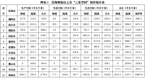 附表3 沿海地级以上市“三生空间”划分统计表108