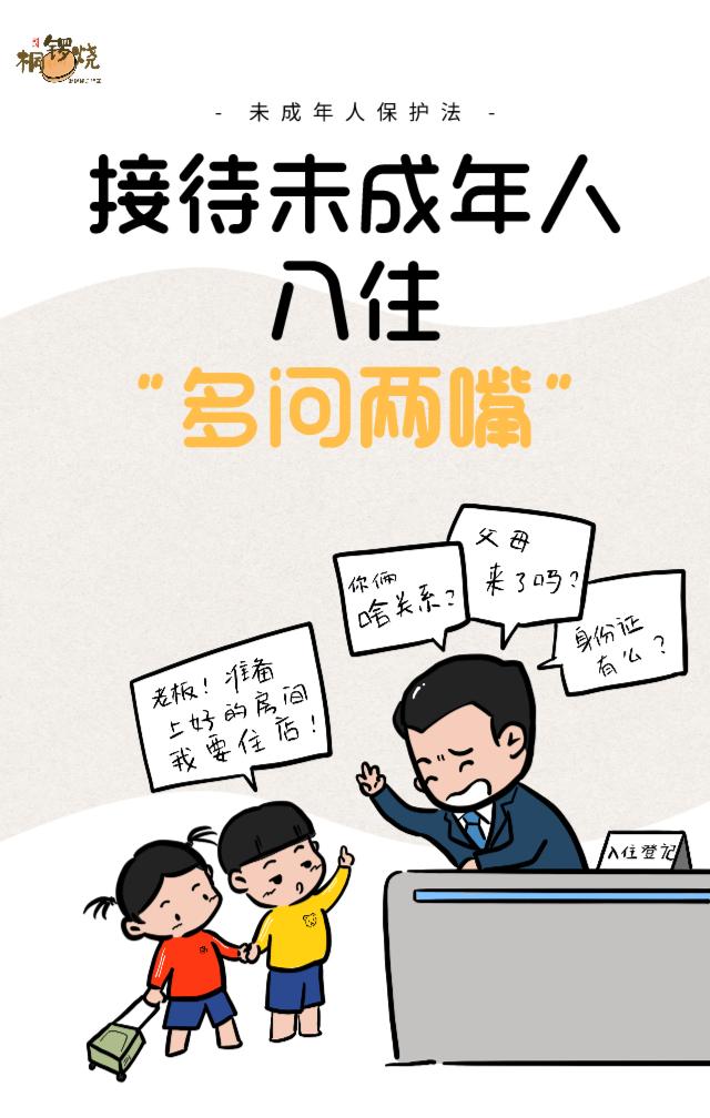 第五十七条规定,旅馆、宾馆、酒店等住宿经营者接待未成年人入住,或者接待未成年人和成年人共同入住时,应当询问父母或者其他监护人的联系方式、入住人员的身份关系等有关情况;发现有违法犯罪嫌疑的,应当立即向公安机关报告,并及时联系未成年人的父母或者其他监护人。