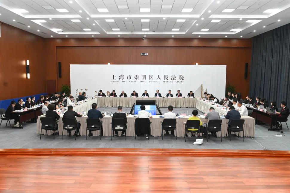 在随后召开的座谈会上,现场播放了上海法院数字法院建设工作和崇明区人民法院工作汇报专题片。