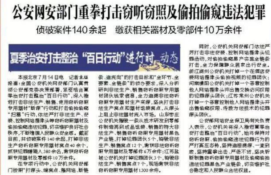 存储还和非法摄像机的布置方式有关。如果违法者在酒店用了本地存储,安装者过一段时间还要住到同一家酒店再把设备取出来;如果摄像机只有采集功能,后端存储,且又连接了电源供电而不是电池供电,那布一次就可以不停地采集非法信息,这种情况下就更难监管了。