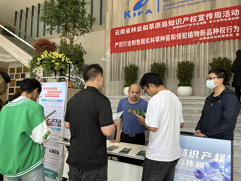 近日,结合2023年“世界知识产权周”活动,云南省林业和草原局联合昆明国际花卉拍卖交易中心在昆明市呈贡区举办林草植物新品种权保护宣传活动。