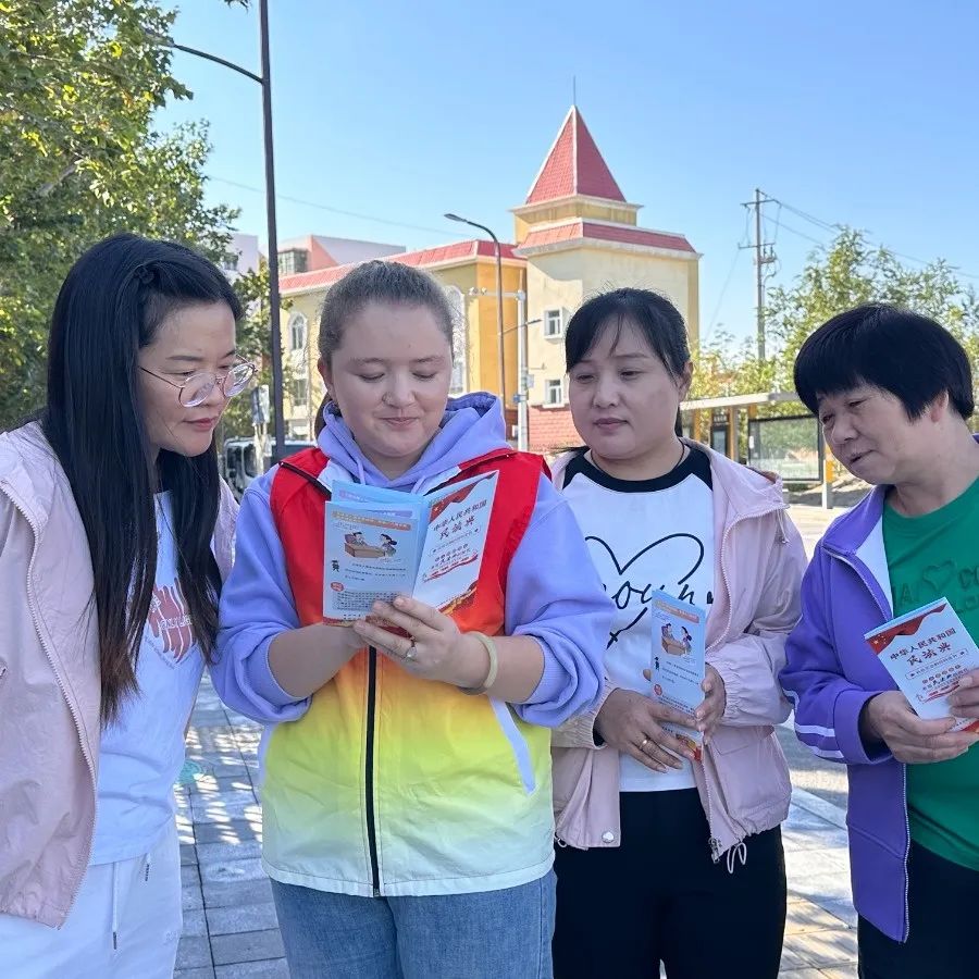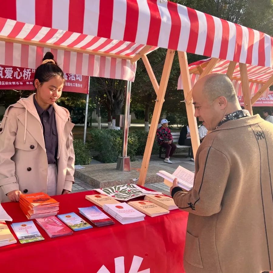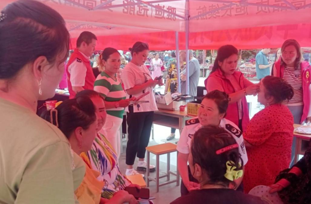 克拉玛依市克拉玛依区妇联联合昆仑路街道办事处在南泉南苑社区活动广场举办了“普法传温情 共筑爱心桥”妇女维权活动。