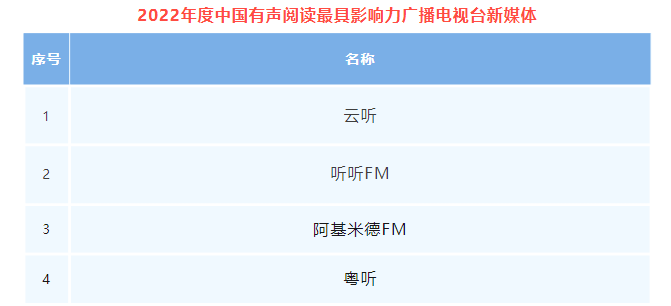 2022中国有声阅读影响力榜单出炉,云听登顶分类榜单