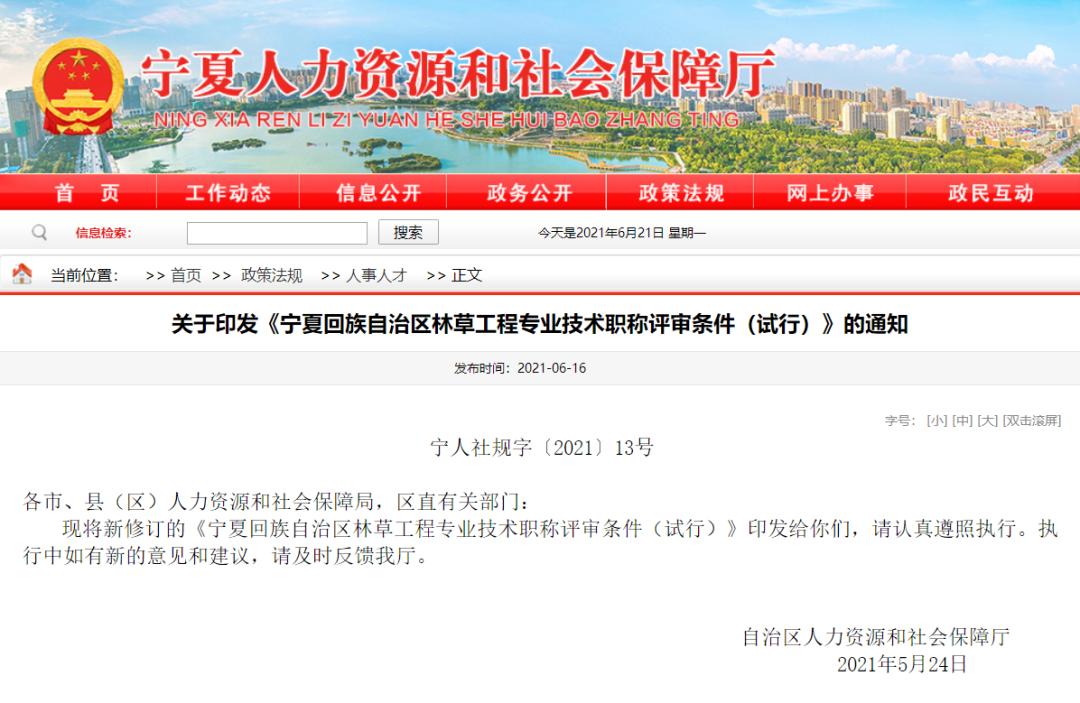 关于印发《宁夏回族自治区林草工程专业技术职称评审条件(试行)》的通知