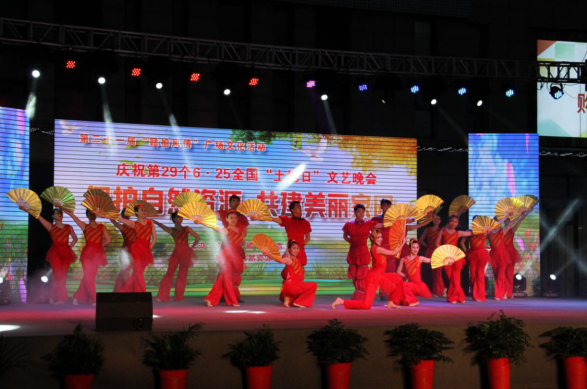 6月25日晚,灌云县局举办2019“伊山放歌 奋进灌云”——广场文化活动启动仪式暨6·25全国土地日专场演出进一步宣传灌云自然资源事业和“珍惜土地资源 建设美好家园”这一主题,同时此场晚会也是灌云县自然资源和规划局新组建后第一次广场演出,在灌云自然资源人的共同努力之下,海洋、林业、国土等各项工作有机融合,自然资源管理各项工作取得了崭新的成绩。在启动仪式结束后,12个精彩节目一一登场,有动感十足的舞蹈,有或婉转动人、或大气磅礴的歌曲,有展示自然资源工作成绩的音乐快板,还有紧扣自然资源工作业务的小品。一个半小时的演出简单而热烈,台上台下互动频繁,节目衔接流畅,展现了灌云自然资源人积极向上的人生态度和良好的精神风貌,鼓舞着大家不忘初心、牢记使命,在新时代自然资源事业新征程中砥砺前行,向新中国成立70周献礼。